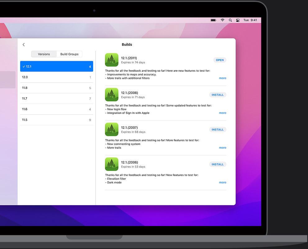 مع TestFlight، تطبيقك جاهز للانطلاق على جميع أجهزة Apple. الآن على Mac.