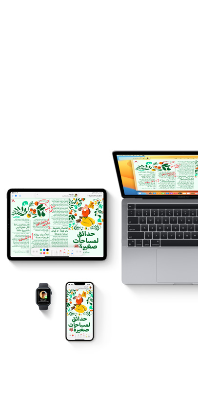 اعمل على كل أجهزتك بكل سلاسة إذ يمكنك البدء بمهمة على أحد الأجهزة وإكمالها على جهاز آخر، أو حتى استخدام الأجهزة معاً بفضل كاميرا الاستمرار وميزة التحكم العام والمزيد.