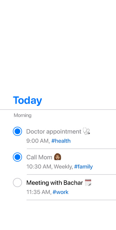إلى قوائم المهام، لن تنسى أي تفصيل بعد الآن إذ يمكنك إنشاء التذكيرات على السريع أثناء التنقل بمساعدة Siri وتخصيص القوائم والتنبيهات بفضل مجموعة من الأدوات الفعالة.