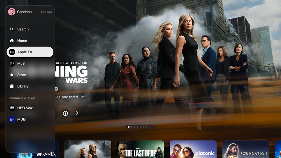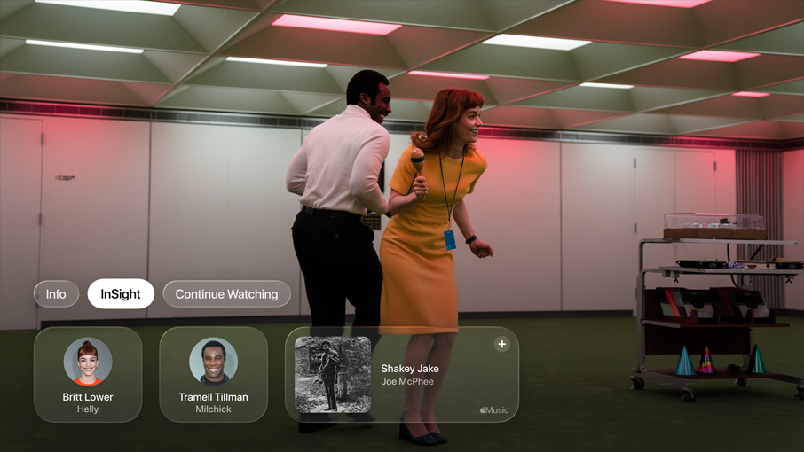 InSight. You can get information about Apple TV Original series and films as you watch them. Just bring up the media player controls to learn more about the actors on the screen and the music that’s playing. The details automatically update as the scene changes. And when you use iPhone as the Apple TV remote, InSight information appears in the palm of your hand.5