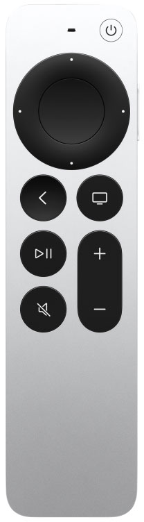 A touch-enabled clickpad. Easily swipe through episodes, scenes or frames with an intuitive circular movement. Turn your TV on or off, change the input to Apple TV 4K and control the volume.