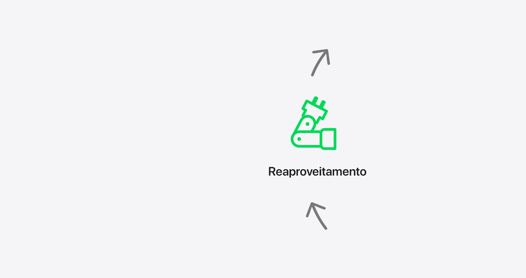 Reaproveitamento. Com a colaboração de fornecedores para reciclagem, recuperamos produtos e criamos soluções para maximizar o reaproveitamento de materiais prioritários. Também compartilhamos os aprendizados para o progresso do setor.