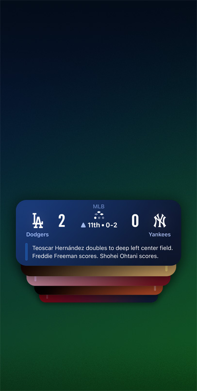 Obtenez les pointages sans attendre avec Apple Sports. Suivez les matchs en direct grâce aux mises à jour action par action sur l’écran verrouillé d’iPhone, et voyez les statistiques et classements de vos équipes préférées.