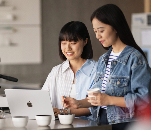 Die Gründer entschieden sich für den Mac, damit alle Teammitglieder an jedem Standort des Unternehmens ihr Bestes geben können – von den kreativen Köpfen im Design bis hin zu den dynamischen Mitarbeiter:innen im Vertrieb. Die Designer:innen setzen auf den Mac, weil sich ihre Ideen mit leistungsstarken Kreativitätsapps wie Adobe Photoshop und Illustrator ganz einfach in einzigartigen Entwürfen umsetzen lassen. Und durch Apps für die Zusammenarbeit wie Slack und Front können die Design‑ und Vertriebsteams jederzeit miteinander kommunizieren und ihre Arbeit koordinieren – selbst bei der stetig wachsenden Zahl an individuellen Aufträgen.
