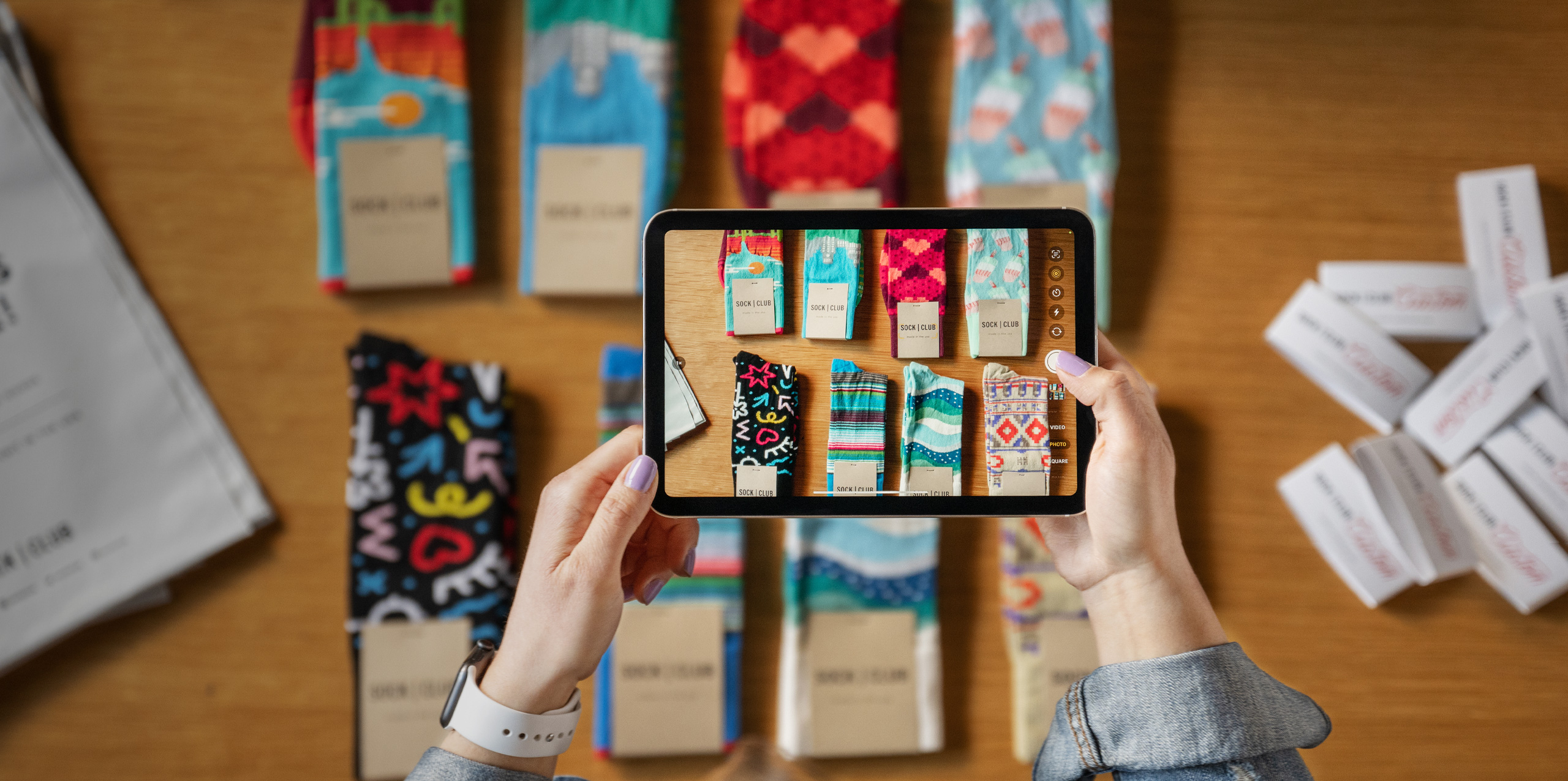 Sock Club stellt auch seinen Strickteams in den Fertigungsstätten in North Carolina Apple Geräte zur Verfügung. Statt Auftragsdaten von Hand einzutippen, scannen sie jetzt QR‑Codes mit dem iPad oder iPhone, um die Designs auf den Strickmaschinen einzuprogrammieren und zeitliche Abläufe zu planen. Die Daten werden automatisch an das Vertriebsteam in Texas gesendet, das CRM‑Apps wie Hubspot auf dem iPad nutzt, um Auftragsdaten zu generieren, Versandetiketten zu erstellen und Produktfotos zu machen, um sie an Kund:innen zu schicken.
