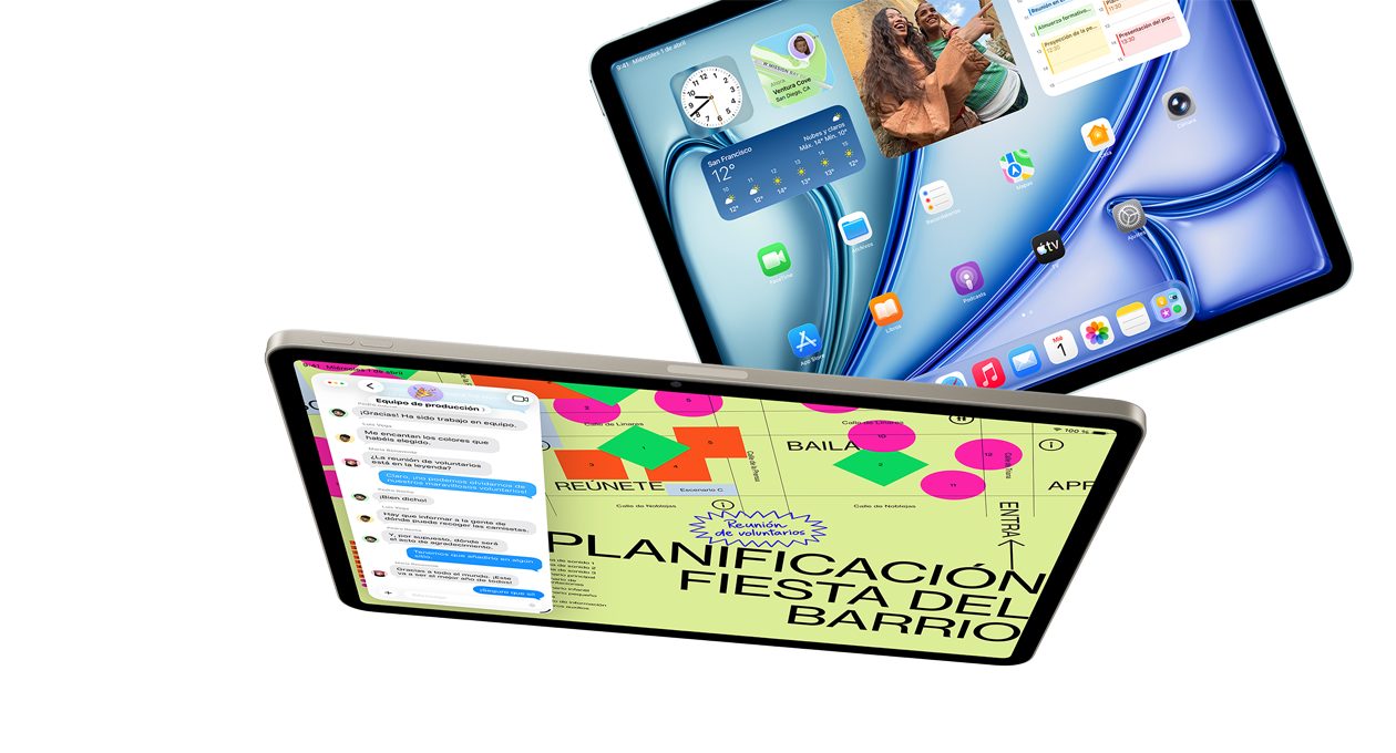 El chip M4 eleva el rendimiento del iPad Air hasta rozar las nubes. Las prestaciones de IA que utilizas a diario vuelan como nunca con una potencia bestial y un 50 % más de memoria unificada. Por si fuera poco, la arquitectura de la GPU te da unos gráficos avanzados aún más fluidos para trabajar, ver contenidos en streaming, crear o jugar. Y no te preocupes, tienes autonomía para el día entero.4