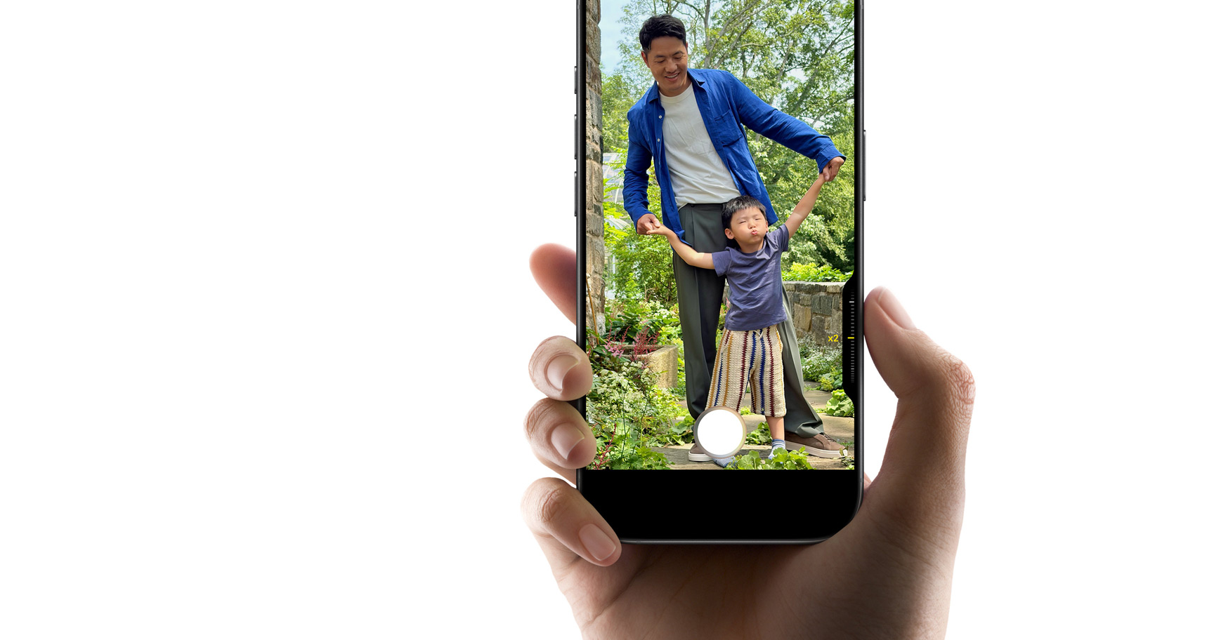 Con la nueva cámara frontal tienes opciones de sobra para encuadrar tus fotos y vídeos como quieras, y mucho más. Toca para ampliar el campo de visión y cambiar entre vertical y horizontal sin girar el iPhone. Y en los selfies de grupo, el plano se amplía para que nadie se quede fuera.