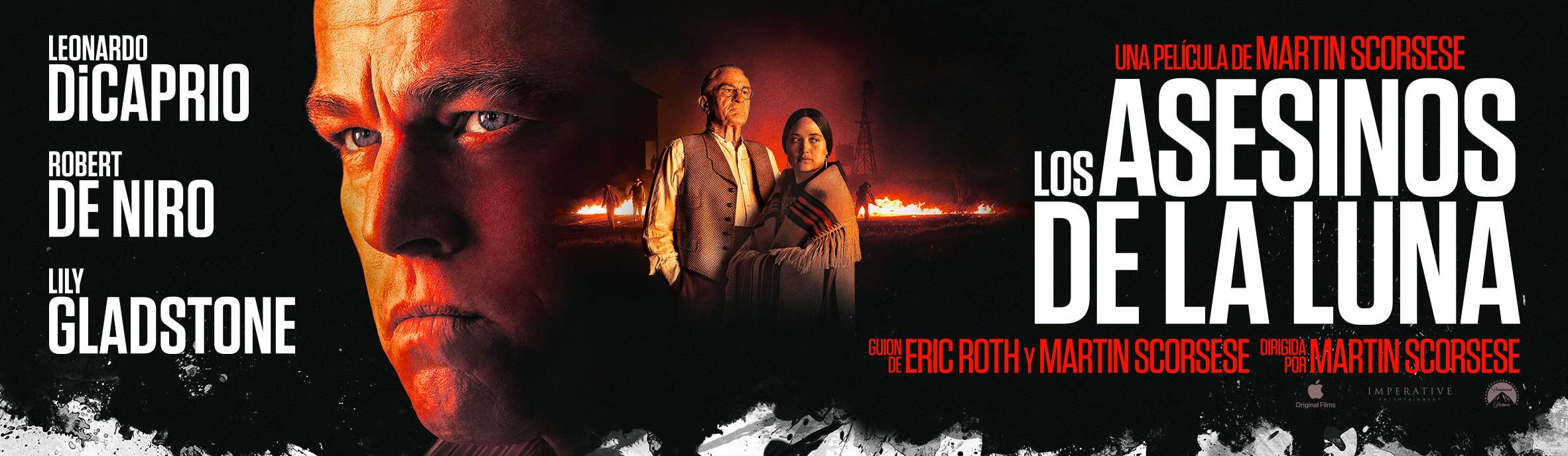 «Los asesinos de la luna» es un épico drama de crímenes ambientado en el Oeste en el que el amor verdadero y la más infame traición cruzan sus caminos. Basada en hechos reales y narrada desde la perspectiva del improbable romance entre Ernest Burkhart (Leonardo DiCaprio) y Mollie Kyle (Lily Gladstone), «Los asesinos de la luna» gira en torno a los sospechosos asesinatos que se produjeron en la Nación Osage cuando este pueblo amasó una fortuna con el petróleo y se convirtió en uno de los más ricos del planeta de la noche a la mañana. «Los asesinos de la luna», con Robert De Niro y Jesse Plemons como coprotagonistas, está dirigida por Martin Scorsese, ganador de un Óscar. Su guion, de Eric Roth y Martin Scorsese, está basado en la novela superventas de David Grann.