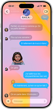 Choisissez parmi les superbes options intégrées ou ajoutez l’une de vos photos pour apporter une touche personnelle à vos conversations dans Messages.