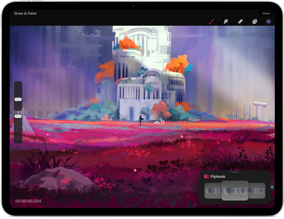 用户手執 Apple Pencil Pro,畫出鮮明生動的筆刷線條