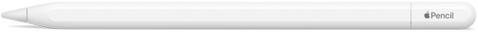 圖片展示 Apple Pencil (第 2 代) 頂部的圓弧狀頂端、Apple 標誌和 Pencil 字樣。