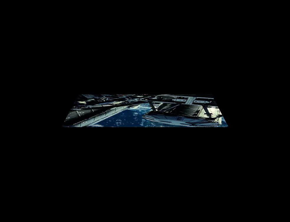 iPad Pro 螢幕上顯示一艘太空船