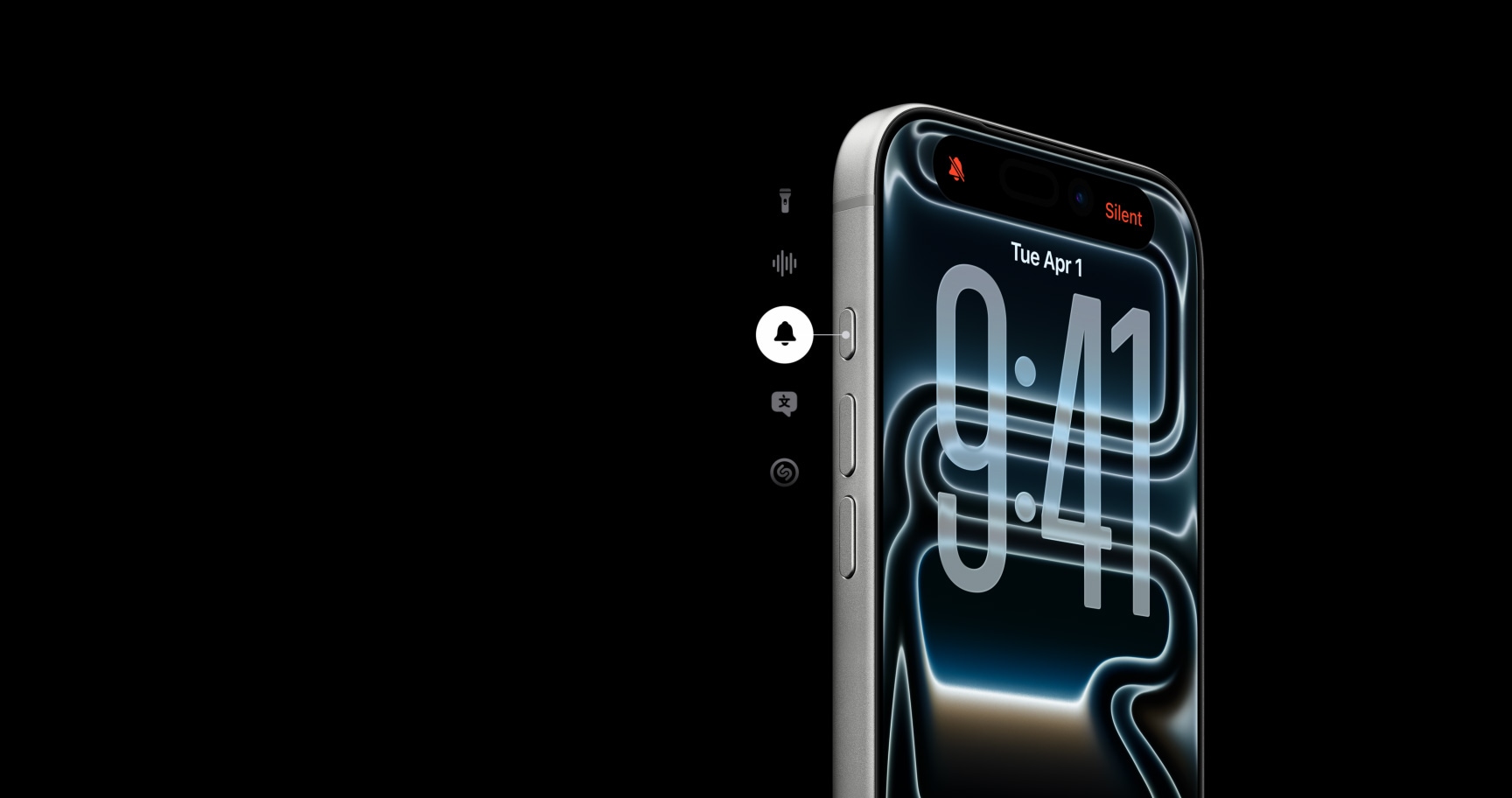 Művelet gomb. A kedvenc funkciód gombnyomásra, rád szabva. Tartsd lenyomva, ha használni szeretnéd a kívánt műveletet – például a Néma módot, a Fordítást vagy a Parancsokat.
