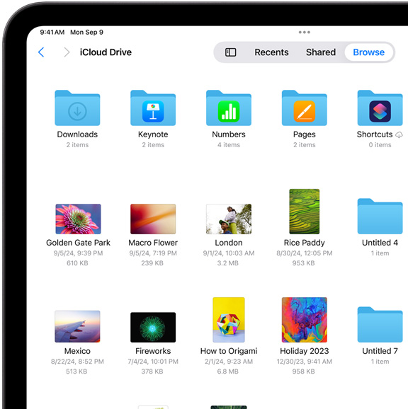 iCloud Drive makes the files and folders you save easy to get to and share, no matter which device you’re using. Access them all from the Files app on iOS and iPadOS, the Finder on your Mac, File Explorer for Windows PCs, or iCloud.com.
