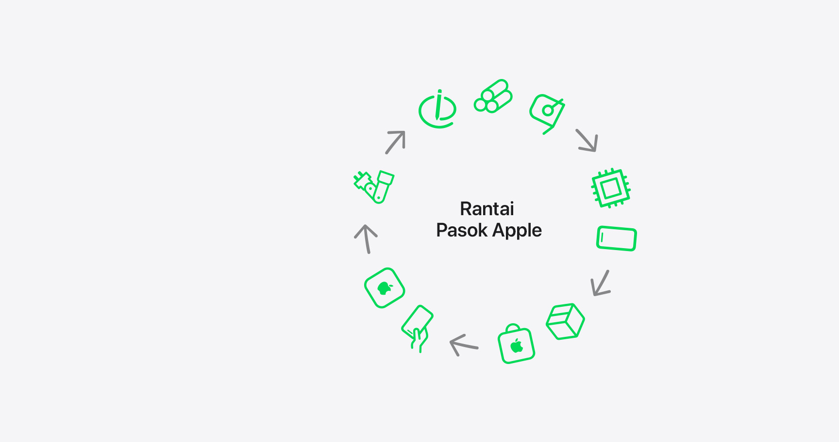 Rantai pasok kami mencakup ribuan fasilitas pemasok di lebih dari 60 negara. Para pemasok mendukung setiap tahap siklus produk Apple, dan kami menerapkan persyaratan ketat kami di seluruh dunia untuk memajukan mitra, perusahaan kami, dan industri.