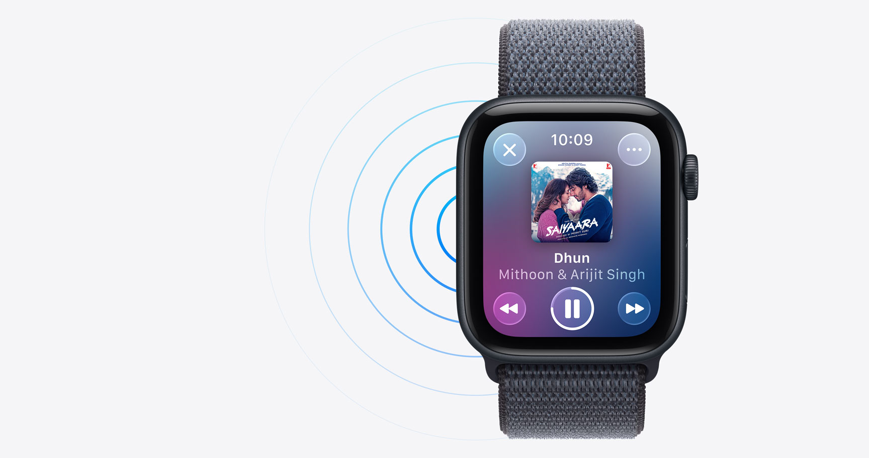 SE 3 connects seamlessly to your AirPods so you can listen to music or podcasts hands-free.6 And if you don’t have your AirPods nearby, you can play media through the watch speaker.