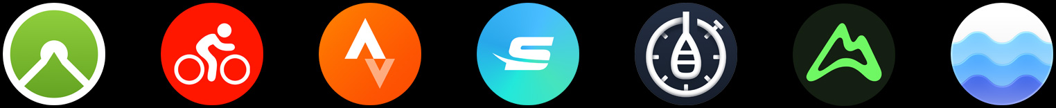 紹介しているアプリ:Komoot、Map My Ride、Strava、Swim.com、Paddle Logger、AllTrails、潮位、MySwimPro、ヤマレコ、Nike Run Club、Palisades Tahoe、Oceanic+、ASICS Runkeeper、Slopes。