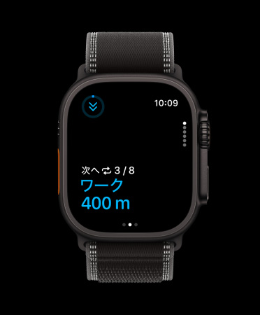 Apple Watch Ultra 3は、あらゆるスポーツをレベルアップします。あなたがサイクリングをすれば、リアルタイムで進み具合がわかるように速度と効率をアクティブにモニタリングします。水中に飛び込めば、セットを記録したり、ストロークパターンを自動で検出したり、合計距離を計算します。あなたはただ、記録を塗り替えるだけです。