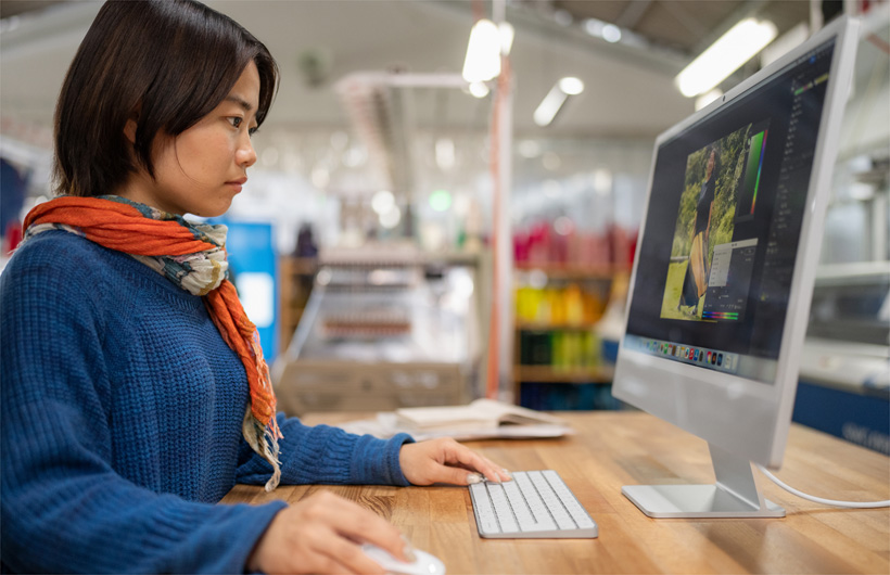 オンラインチームの林萌々氏は、iMacでAdobe Creative Cloudを使用して、商品画像を撮影、編集し、ブランドサイトにアップロードしています。tamaki niimeではカタログから購入ページまで、作品の生産時にかけているのと同じ想いを注いで、作品をオンラインに並べています。お客様とより深くつながるために、林氏は、魅力的な生地やモノづくりの舞台裏をiPhoneで撮影し、ブランドストーリーに命を吹き込むリアルなコンテンツに仕上げています。