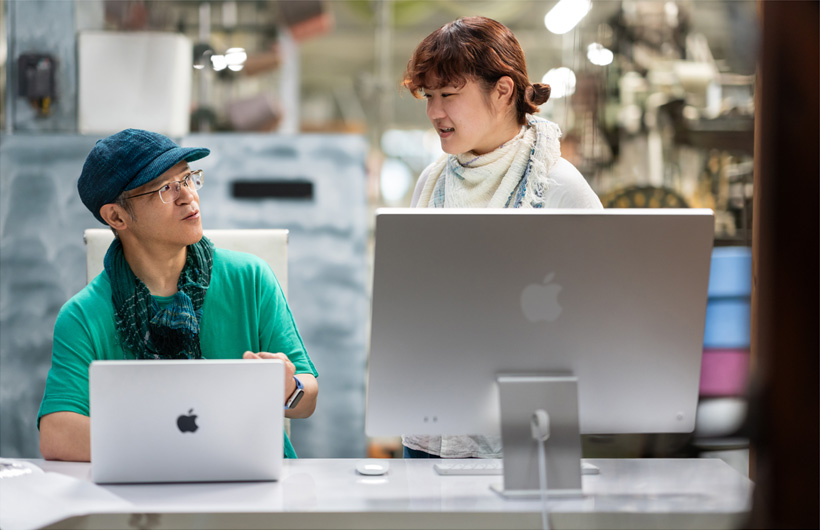 玉木氏は、伝統産業を現代を生き延びるビジネスに生まれ変わらせるスモールビジネスの立ち上げにApple製品を選び、よりシンプルにその過程を実現させることができました。今では、信頼性が高く直感的に使えるAppleのテクノロジーの強みを活かしてビジネスを進化させ、播州織の真髄を育み新しい世代につなげています。