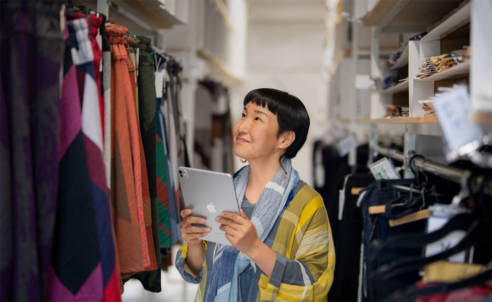 tamaki niimeの服は、二つとして同じものがありません。一点モノはこのブランドの特徴ですが、それゆえに在庫管理は容易ではありません。チームのみなさんはiPadとMacを活用し、詳細を確認しながら出荷を手配することで、すべてのアイテムを確実に目的地へと届けています。iPadとMacがシームレスに連係するので、倉庫や店舗で注文処理を行うチームにとって、iPadは理想的なツールです。「お客様は、ほかにはない唯一無二のアイテムを探しています。ここはいつも、まるで宝探しのようなんです」と販売管理の阿江美世子氏は話します。「iPadを使えば、アイテムが山のようにあっても、指先ひとつで必要なものを見つけることができます」