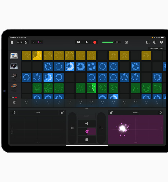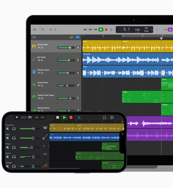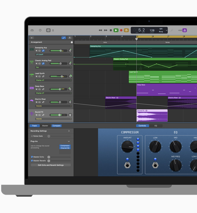 비트메이킹, 작곡, 리믹싱을 위한 스마트한 도구들을 활용해 음악을 제작하고 오디오를 완벽하게 다듬을 수 있습니다. 이제 Apple Creator Studio에 포함.
