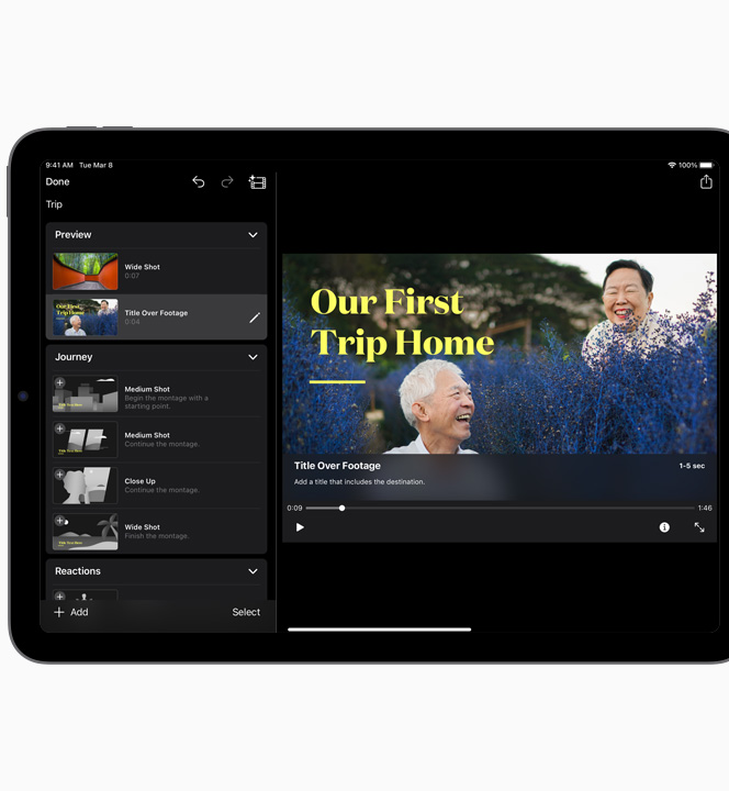 고품질의 동영상을 제작 및 편집하고, 고급 정리 도구를 사용하고, 타이틀, 트랜지션 및 다양한 효과를 추가하는 것까지 놀라운 속도로 처리할 수 있습니다. 이제 Apple Creator Studio에 포함.