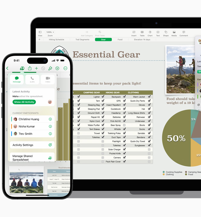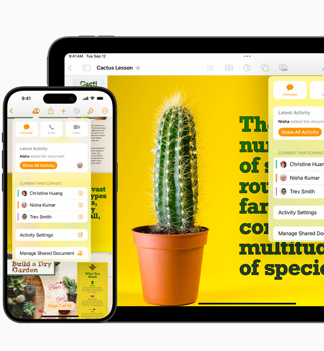 Apple 기기를 넘나들며 작업을 매끄럽게 이어갈 수 있습니다. 한 기기에서 시작한 작업을 다른 기기에서 마무리할 수 있죠. 심지어 ‘연속성 카메라’ 및 ‘유니버설 컨트롤’ 등의 기능을 활용해 여러 기기를 함께 사용할 수도 있답니다.