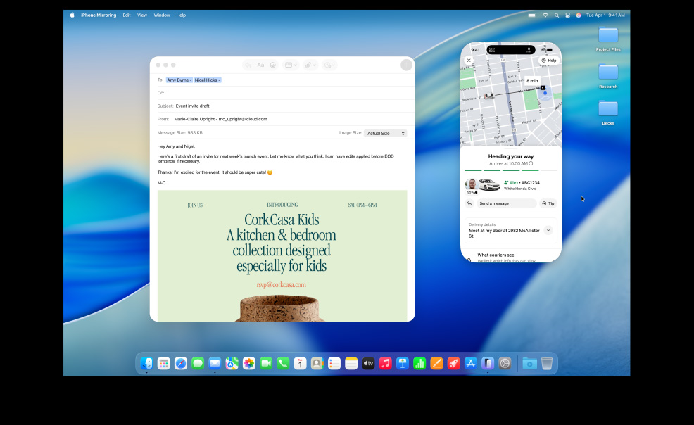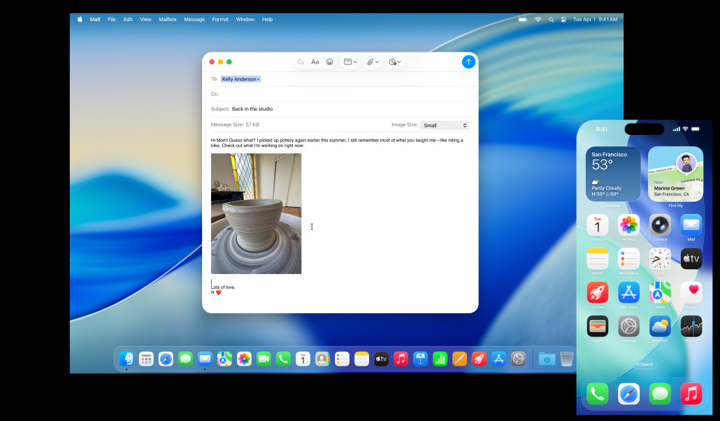 La Mac, el iPhone, el iPad y el Apple Watch ya son increíbles por su cuenta. Pero al usarlos juntos, se lucen mucho más. Gracias a Continuidad, tus dispositivos trabajan en equipo con total fluidez para que puedas acceder a un mundo de funcionalidades espectaculares. Empieza a escribir un email en tu Mac y termínalo en el iPad. Toma una foto en tu iPhone para verla al instante en la Mac. O haz llamadas sin tener que usar el iPhone.1