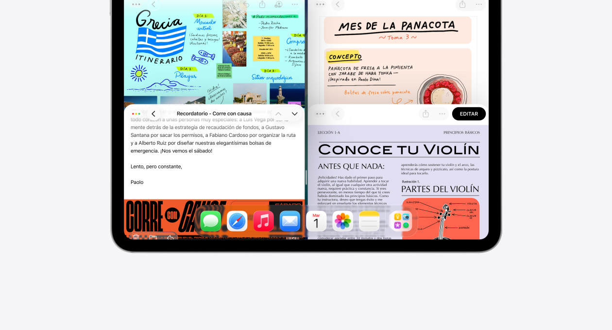 Ordena tus ventanas moviéndolas hacia el borde izquierdo o derecho. Además, ahora también puedes dividir la pantalla del iPad en tercios o cuartos.
