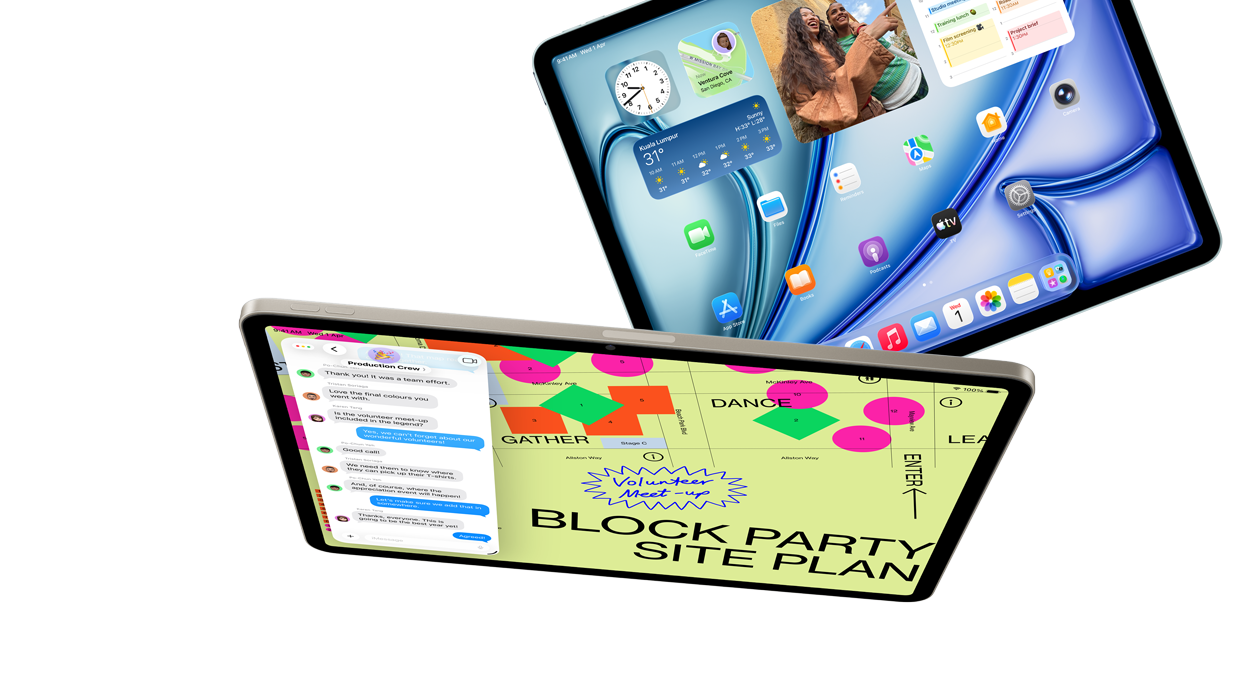 The lightning‑fast M4 chip with 50 per cent more unified system memory elevates performance for all the things you love to do on iPad Air. It’s an AI powerhouse, enabling the AI features and capabilities you use every day to get things done faster, effortlessly. And the GPU architecture delivers even more fluid advanced graphics whether you’re working, streaming, creating or gaming. All with amazing efficiency for all-day battery life.4