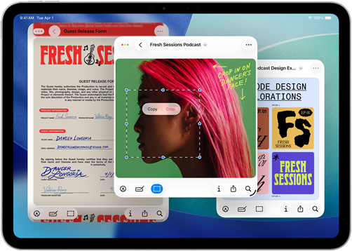 Passe o dedo para a esquerda ou para a direita para organizar as janelas. Ou divida o ecrã do iPad em três ou quatro secções para ter tudo arrumado.