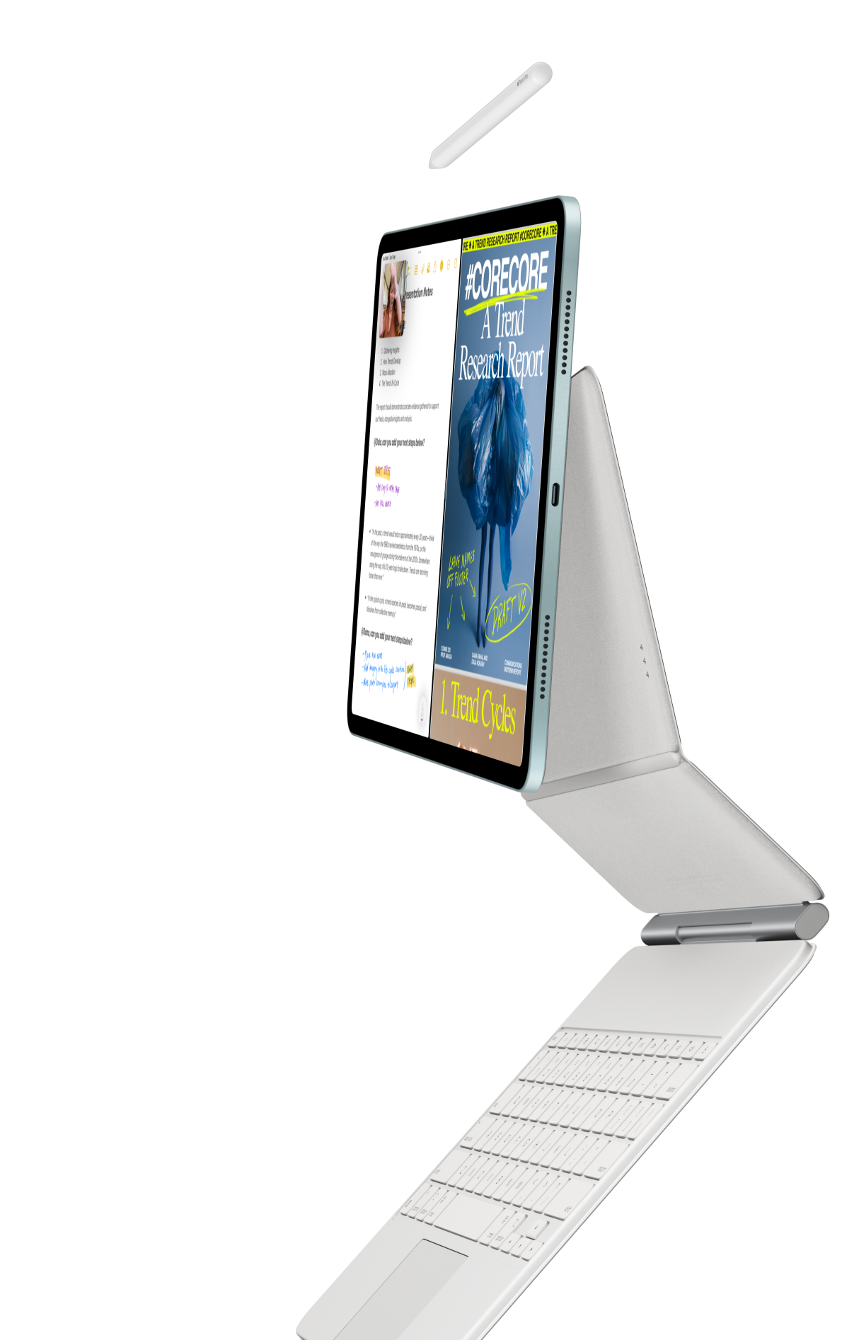 Magic Keyboard is the perfect companion for iPad Air. It delivers an amazing typing experience and a trackpad for precision tasks in a sleek, portable design. The keyboard includes a 14‑key function row, a USB‑C connector for pass‑through charging, and front and back protection for your iPad. The floating cantilever design smoothly adjusts to multiple viewing angles and a large glass trackpad expands how you can work with iPadOS.3