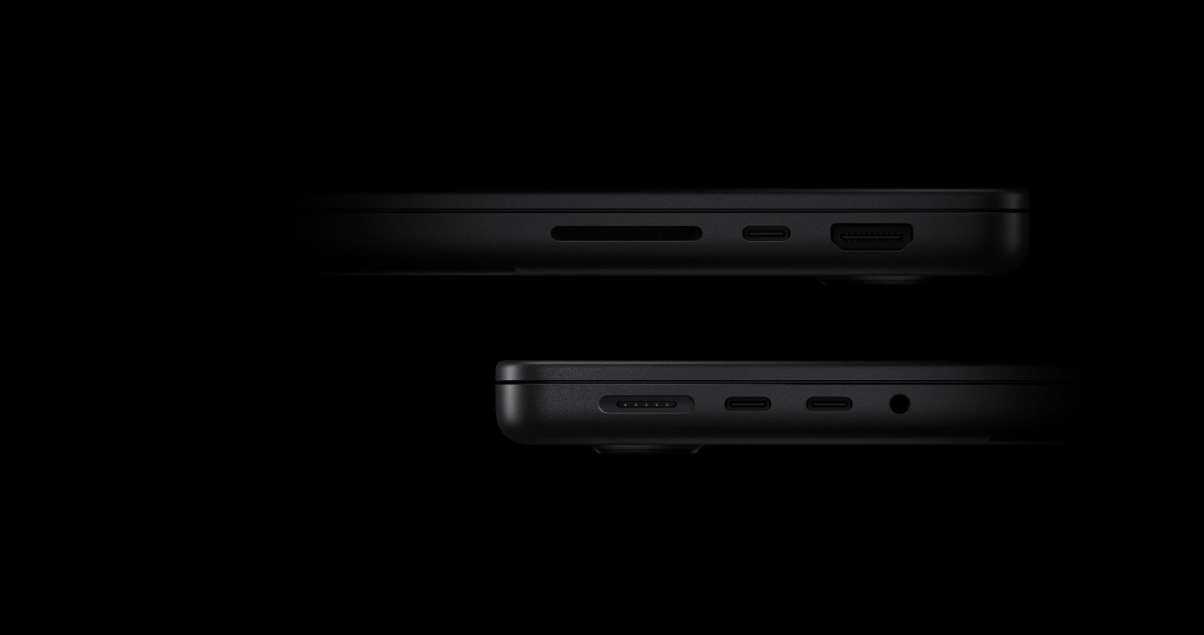 Conectivitate. Fiecare MacBook Pro este echipat cu trei porturi Thunderbolt 4 sau 5, un port HDMI, un port MagSafe 3, un slot pentru card SDXC și o mufă pentru căști. Așa că poți conecta periferice de mare viteză și utiliza mai multe ecrane externe.9