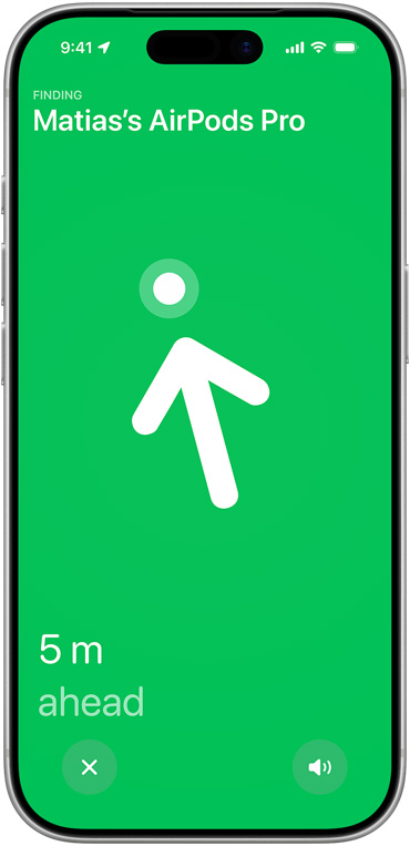 Charging case. Next-generation Ultra Wideband technology increases the distance of Precision Finding by 1.5x,11 so you don’t lose track of your AirPods.
