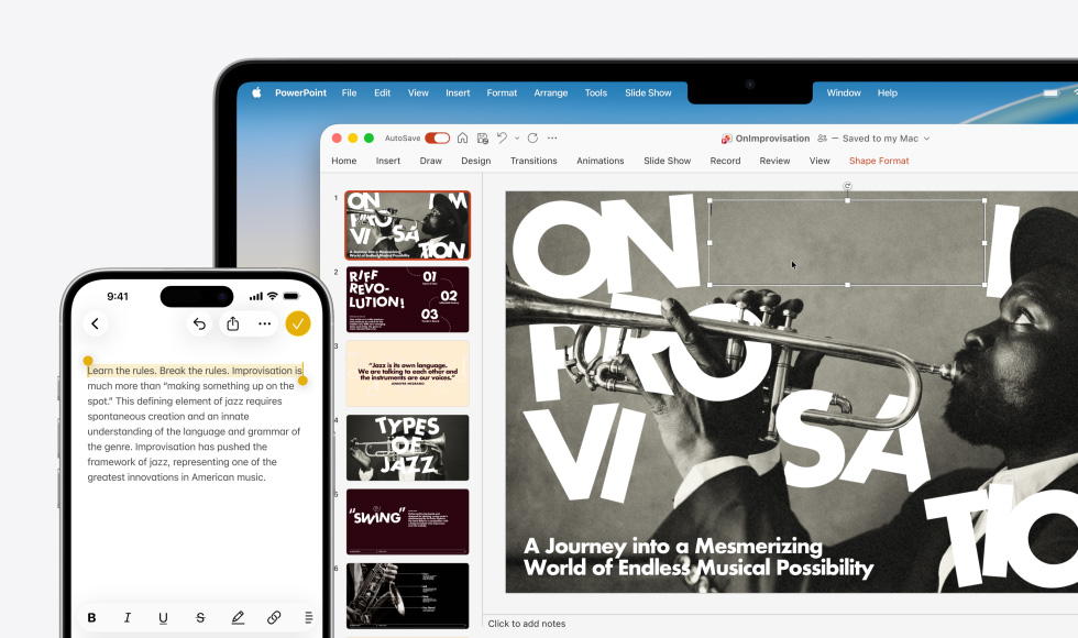 ใช้เครื่องมืออัจฉริยะเพื่อปลดล็อคประสิทธิภาพการทำงานและความคิดสร้างสรรค์ให้ก้าวล้ำไปอีกขั้น ตั้งแต่การปรับแต่งรูปภาพใน Photoshop ไปจนถึงการเรนเดอร์โมเดล 3D ใน Shapr3D และการสร้างภาพยนตร์ใน Final Cut Pro