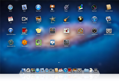 Launchpad 使一一查找應用程式檔案夾成為過去式。只要點按 Dock 上的 Launchpad 圖像,按一下圖像以啟動其應用程式。要建立類似應用程式檔案夾,只要將應用程式拖放至另一個應用程式上即可;而刪除系統裡的應用程式也同樣簡單。所有自 Mac App Store 下載的應用程式會隨時自動加至 Launchpad,供你使用。