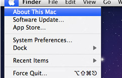 你的 Mac 必須搭載 Intel Core 2 Duo、Core i3、Core i5、Core i7 或 Xeon 處理器以執行 Lion。按一下螢幕左上方的 Apple 圖像,然後選擇「關於這台 Mac」,即可了解你目前的 Mac 是否搭載上述任一處理器。