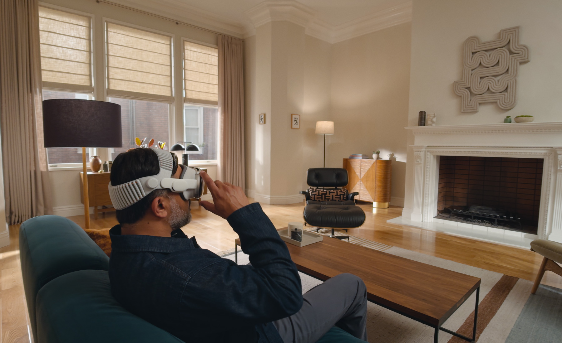 In visionOS, apps fill the space around you, beyond the boundaries of a display. They move anywhere, scale to the perfect size, react to the lighting in your room and even cast shadows.